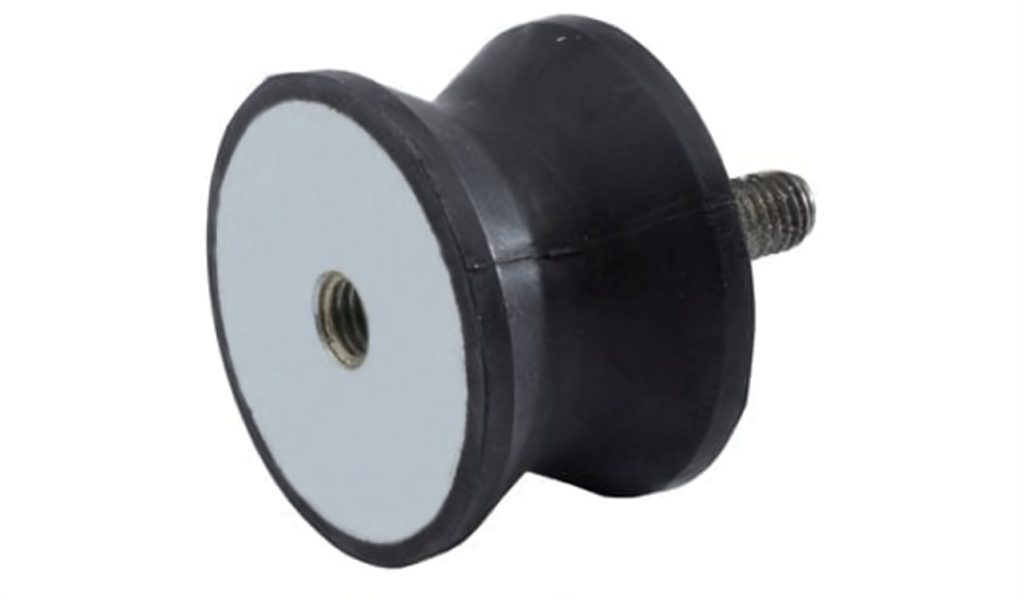 Durable rubber anti-vibration mount with threaded insert for isolating shock, noise, and vibration in machinery.