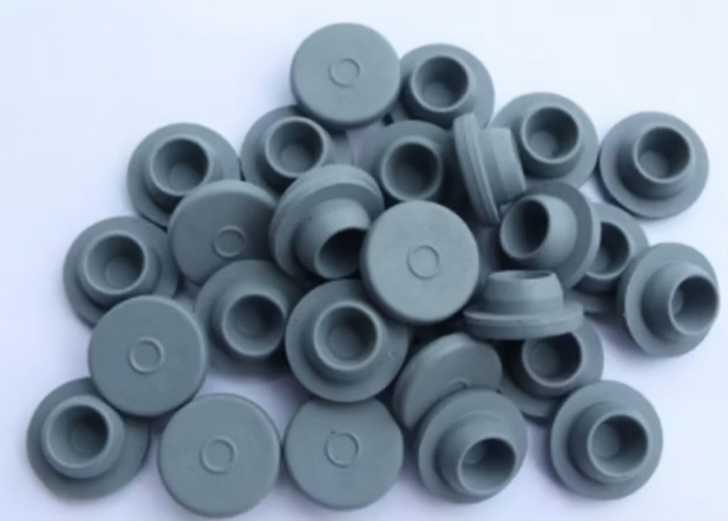 Medical-grade rubber stoppers for sealing vials, ensuring leak-proof and contamination-free closure.